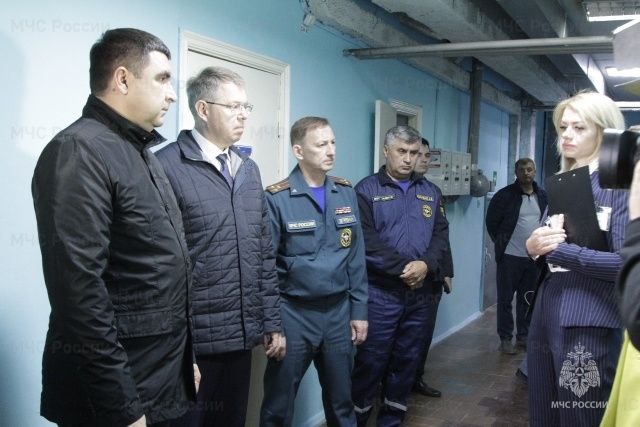 Далее участники мероприятия ознакомились с работой приемного эвакуационного пункта, развернутого на базе лицея и приняли участие в экстренной эвакуации сотрудников в заглубленное помещение в здании спортивной школы.