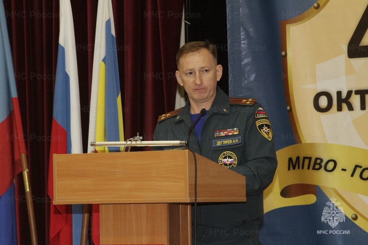 Открывая торжественное совещание к 93-летию гражданской обороны РФ, ВрИО начальника Донского МЧС Александр Дегтярёв поблагодарил личный состав за мужество и профессионализм в деле защиты населения от современных угроз.