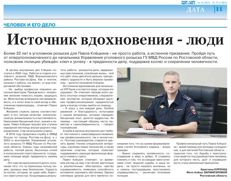Об особенностях работы, сложностях и преимуществах рассказал начальник Управления уголовного розыска ГУ МВД России по Ростовской области полковник полиции Павел Клёцкин.