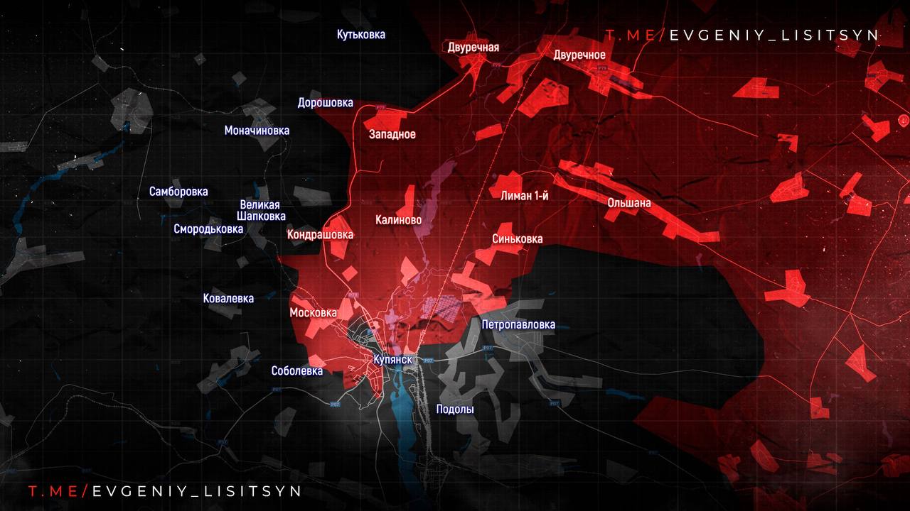 На Купянском фронте ВС РФ контролируют центр Загрызово, ведут бои в южной части. В Купянске продвигаются к Юбилейному.