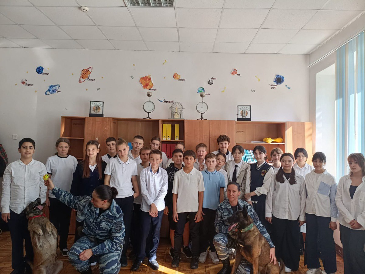 Ученики «полицейского класса» школы № 70 города Ростова-на-Дону стали участниками необычной и познавательной встречи. С визитом к ребятам пришли сотрудники Центра кинологической службы Управления МВД России по городу Ростову-на-Дону капитаны полиции Анна Столбовая и Наталья Волкова, которые провели для учащихся лекцию и показательные выступления со своими четвероногими напарниками.