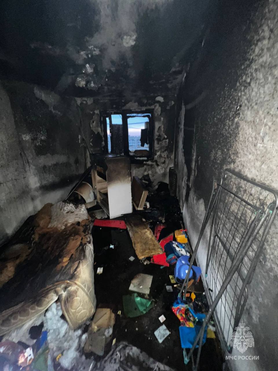 ЧП случилось в девятиэтажке на улице Таганрогской. Загорелись домашние вещи в квартире. Возгорание заметил 10-летний ребенок. Пока ждали пожарных женщина пыталась потушить огонь самостоятельно, но получила ожоги. Огнеборцы эвакуировали женщину и троих детей, еще 10 жителей вывели в спасательных устройствах.