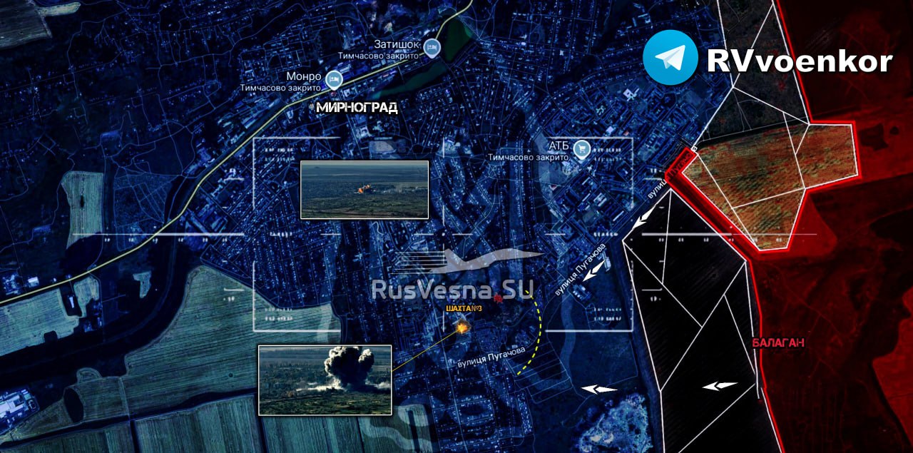 Продолжается продвижение в юго-восточной части Мирнограда, заняты несколько домов.