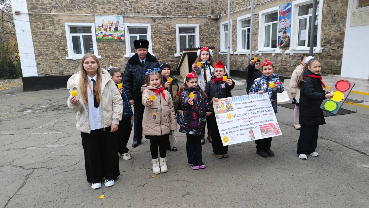 Около МБОУ СОШ № 1 г. Шахты, прошла профилактическая акция «Пешеход, на переход!», организованная командиром отдельного взвода ДПС Госавтоинспекции УМВД России по г. Шахты капитаном полиции Алексеем Смирновым, командой ЮПИД МБДОУ № 32, инициативной группой «Родительский патруль» и отрядом ЮИД.