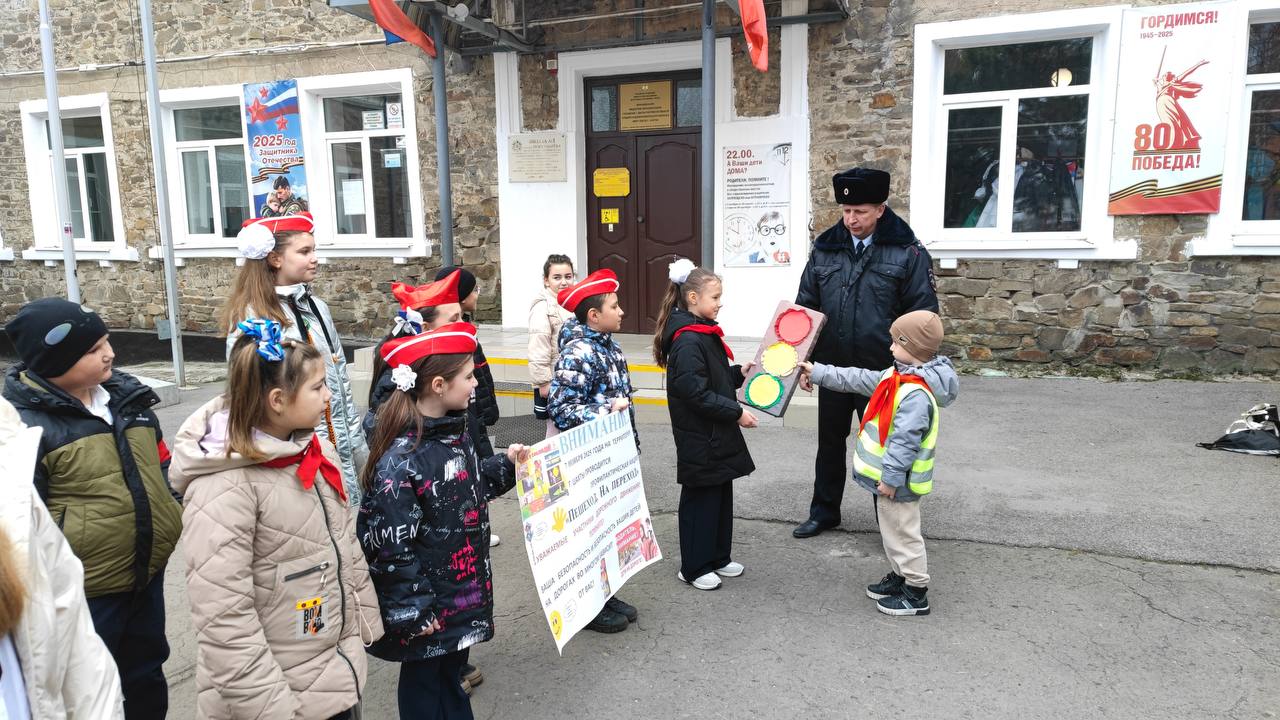Перед началом мероприятия команда ЮПИД и юные инспекторы движения обменялись приветствиями и подарками: школьники вручили малышам изготовленные своими руками макеты светофоров и яркие буклеты с правилами безопасного поведения для пешеходов, а дошколята прочли задорные стихи о дорожной безопасности и подарили старшим товарищам световозвращающие наклейки.