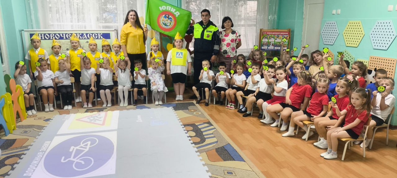 В рамках широкомасштабной областной акции «Осень. Дети. Безопасность» в стенах детского сада № 64 прошло мероприятие под руководством сотрудника Госавтоинспекции МУ МВД России «Новочеркасское» капитана полиции Сергея Романча.