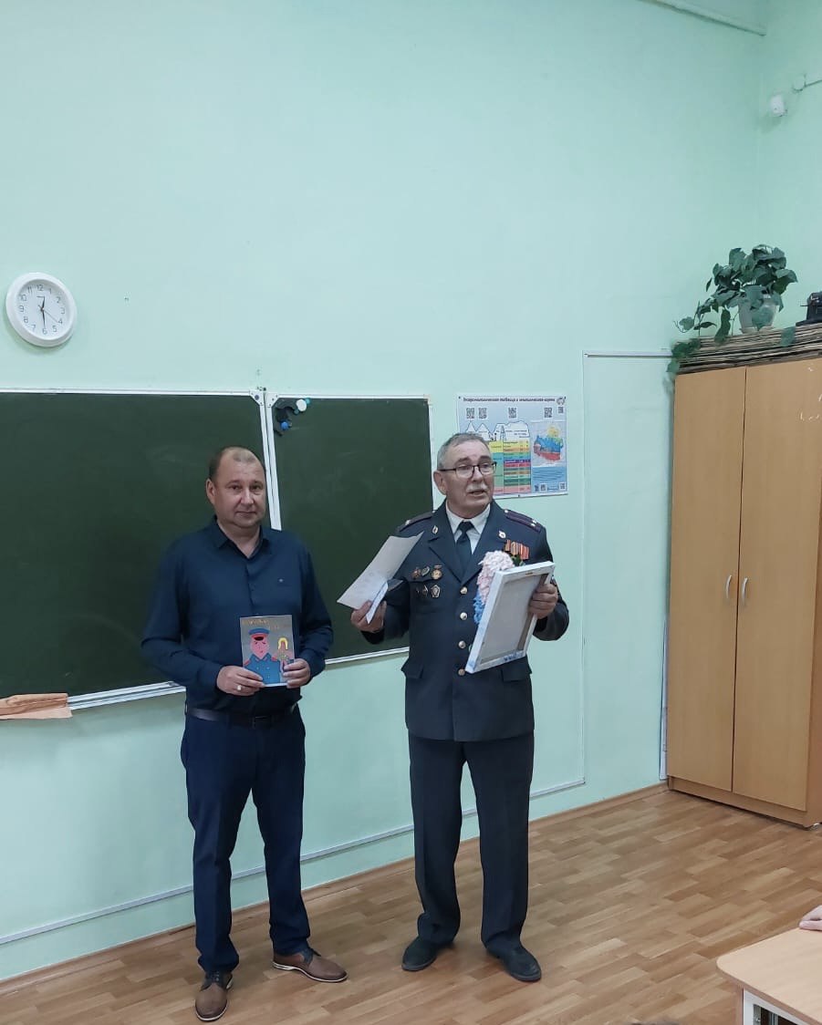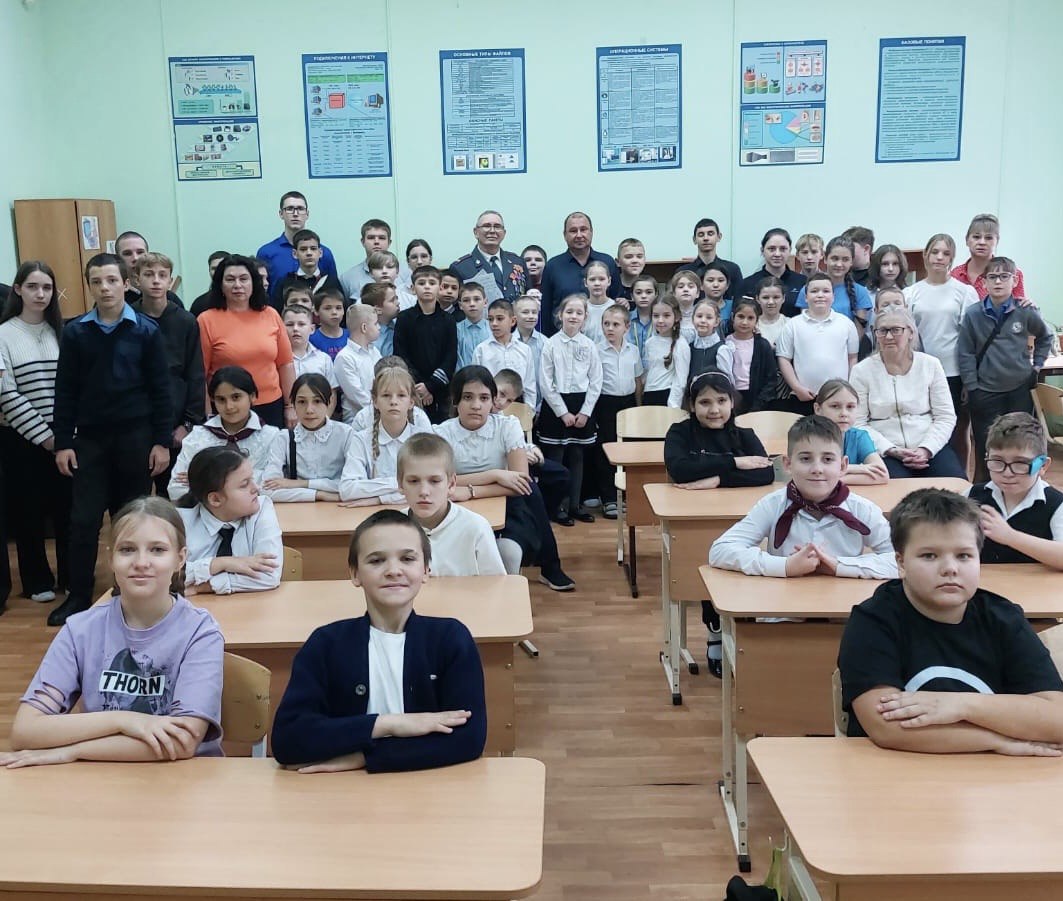 Представитель общественной организации ветеранов территориального органа подполковник полиции в отставке Сергей Овчинников рассказал ребятам об истории становления российской полиции, ее роли в обеспечении безопасности граждан и защите правопорядка. Особое внимание уделил подвигам сотрудников МВД, погибших при исполнении служебного долга, а также отметил с какими трудностями на службе ежедневно сталкиваются сотрудники полиции.В своем выступлении Сергей Иванович отметил, что служба в полиции требует проявления лучших качеств: честности, порядочности, желания и готовности в любой момент прийти на помощь людям. Ребята узнали об особенностях службы в полиции и условиях, необходимых для поступления на службу.