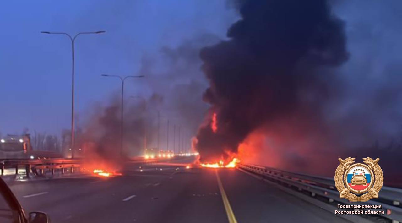 21.11.2025 года в 16 часов 45 минут на 1030 километре автодороги М-4 «Дон», Аксайского р-на, Ростовской обл., неустановленный водитель, управляя неустановленным грузовым автомобилем, в составе автопоезда с неустановленным прицепом, по предварительным данным, в пути следования допустил падение из кузова автомобиля металлического предмета на проезжую часть дороги, который попал в автомобиль «ДАФ» в составе автопоезда с полуприцепом «Крон», под управлением водителя 1967 года рождения, после чего «ДАФ» допустил наезд на МБО с последующим возгоранием.