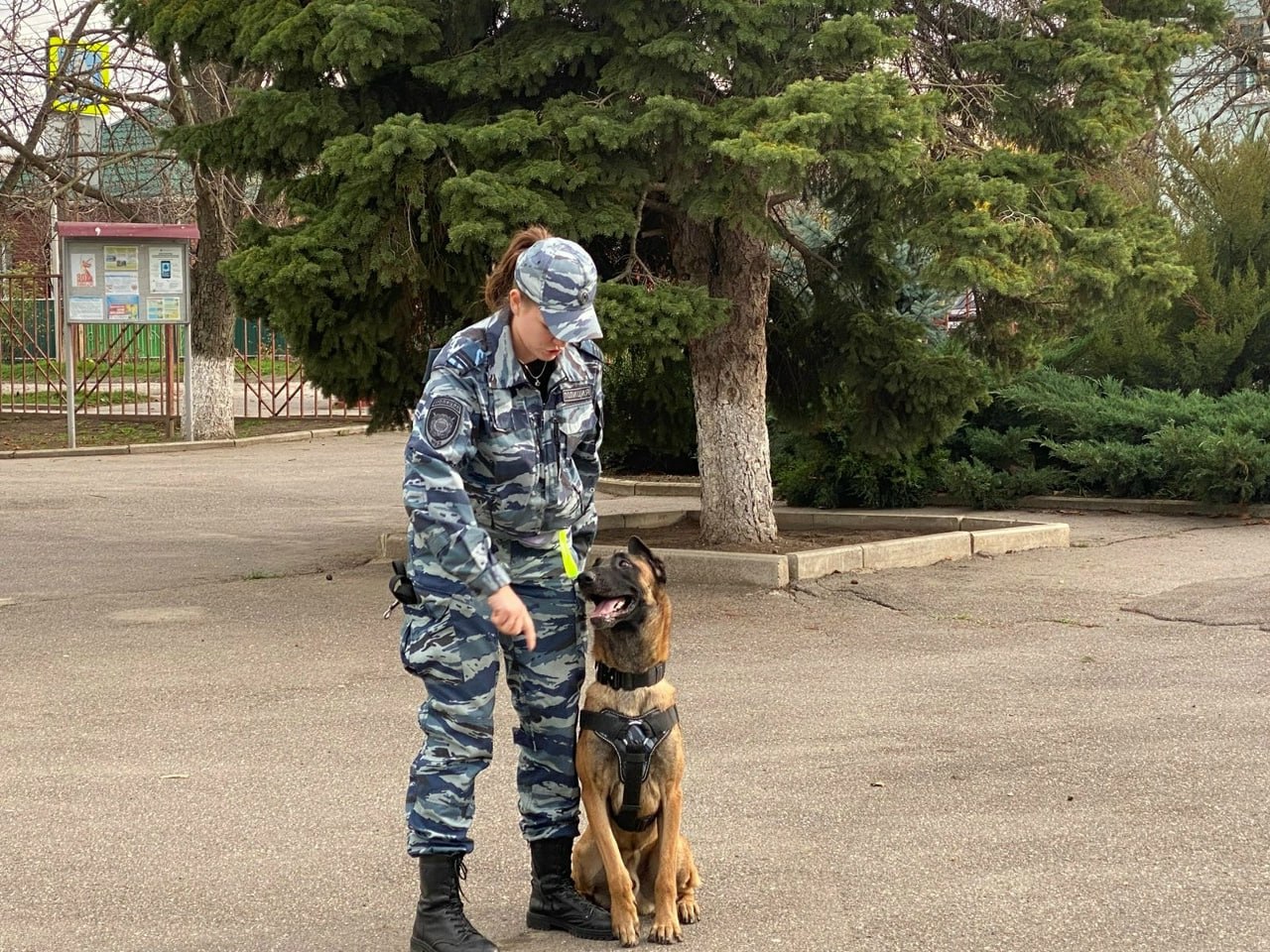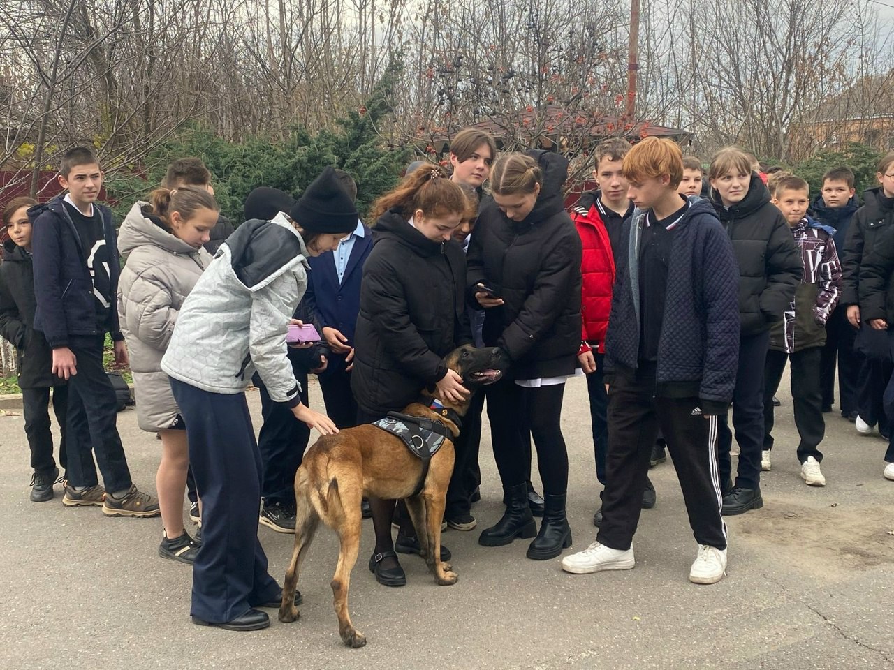 С визитом к ребятам приехали сотрудники Центра кинологической службы Управления МВД России по Ростовской области капитан полиции Анастасия Томина со служебными собаками по кличкам Кармен и Сайга и сержант полиции Елизавета Соляренко со служебными собаками Кок и Барс, которые познакомили ребят и провели для них показательные занятия со своими «четвероногими» напарниками.Знакомство началось с того, что сотрудники полиции рассказали ребятам, как отбирают и готовят для службы собак, какие задачи они выполняют и насколько важна слаженная работа между кинологом и его четвероногим товарищем. Наглядно продемонстрировали школьникам, как их подопечные выполняют различные служебные команды и ищут условные взрывчатые вещества. Самым интересным для школьников было выполнение упражнений, в которых школьники сами могли попробовать поработать со служебными собаками. Под руководством опытных кинологов они отрабатывали команды и наблюдали за тем, как безукоризненно их выполняют собаки.