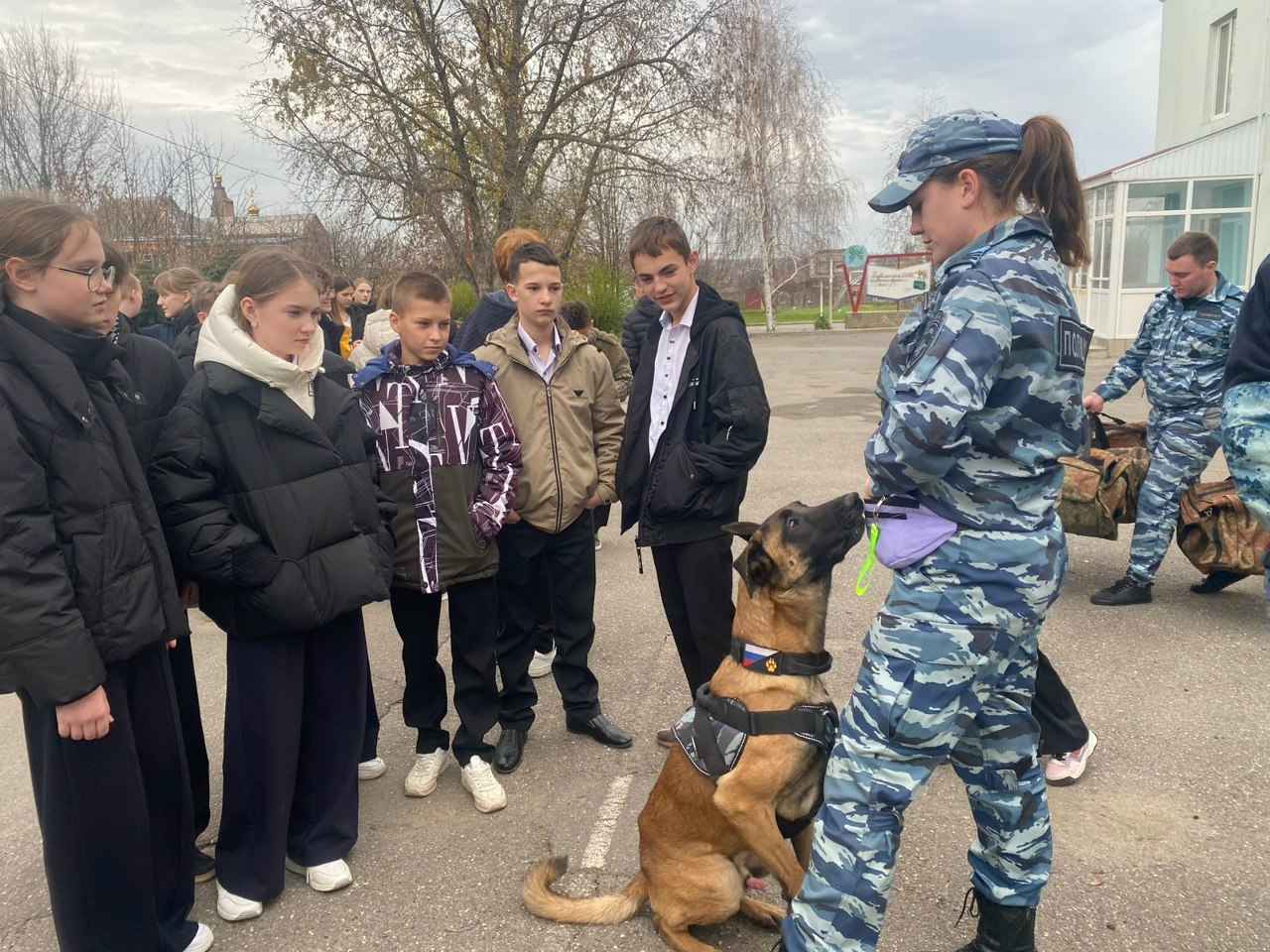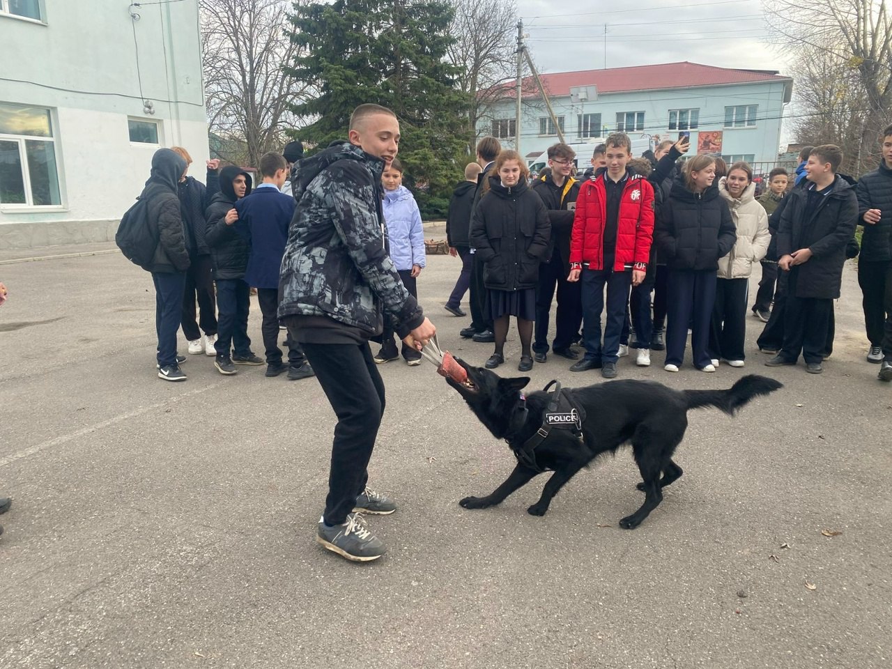 В Песчанокопском районе полицейские познакомили учащихся «полицейских классов» со своими четвероногими напарниками