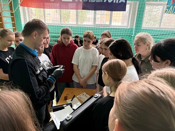 Исполняющий обязанности заместителя начальника МУ МВД России «Волгодонское» подполковник полиции Павел Наровенко рассказал присутствующим об особенностях службы в различных подразделениях органов внутренних дел и о том, насколько разнообразна работа полицейских. Павел Юрьевич подробно рассказала студентам о требованиях к кандидатам на службу в органы внутренних дел и о тех качествах, которыми должен обладать сотрудник полиции для успешного выполнения служебных обязанностей. От подполковника полиции ребята также узнали о социальных гарантиях, предоставляемых сотрудникам органов внутренних и о том, какие должности в настоящее время востребованы.Эксперт-криминалист рассказал об основных экспертизах, проводимых экспертами и о техническом оборудовании, продемонстрировав специальный унифицированный чемодан, в котором находится набор средств, необходимых для работы на месте происшествия.