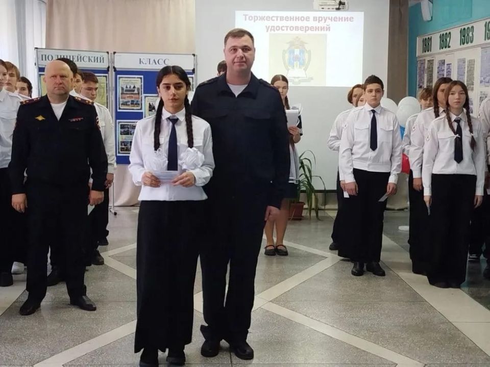 Ребятам вручили их первые официальные документы — удостоверения «Учащегося полицейского класса». Эти символические, но значимые для подростков документы подтверждают их причастность к органам внутренних дел и подчёркивают серьезность выбранного направления.