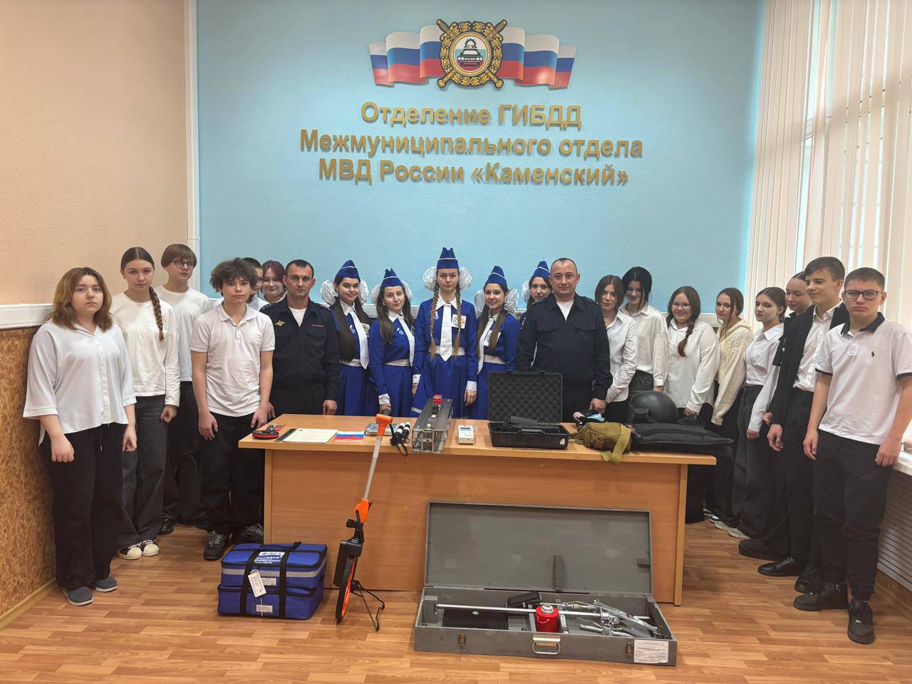 Юные инспекторы движения отряда «ДПС» и учащиеся МБОУ гимназии №12 посетили отделение Госавтоинспекции Межмуниципального отдела МВД России «Каменский».