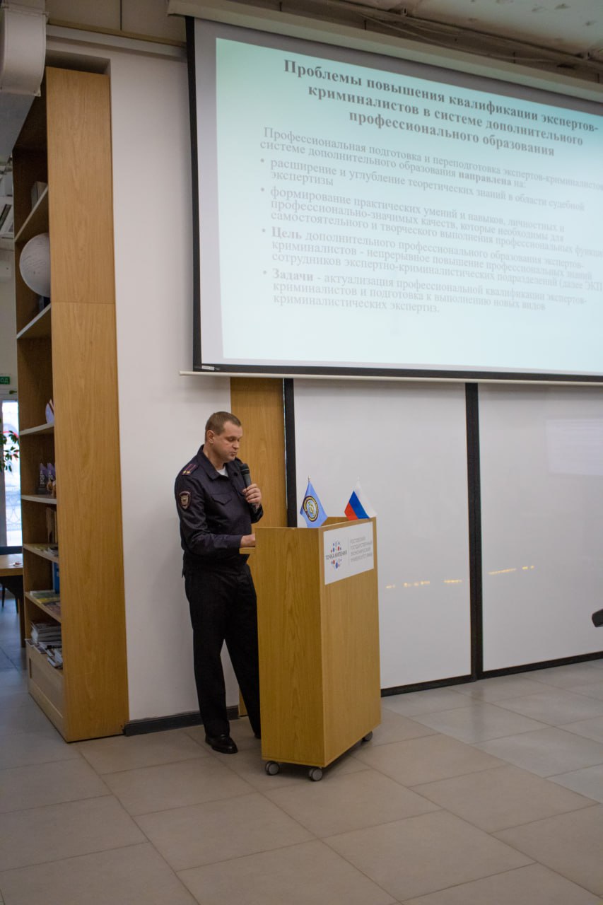 С заключенной речью выступил заведующий кафедрой судебной экспертизы и криминалистики, к.ю.н., доцент Александр Николаев, который поблагодарил сотрудников Экспертного центра за участие в мероприятии.