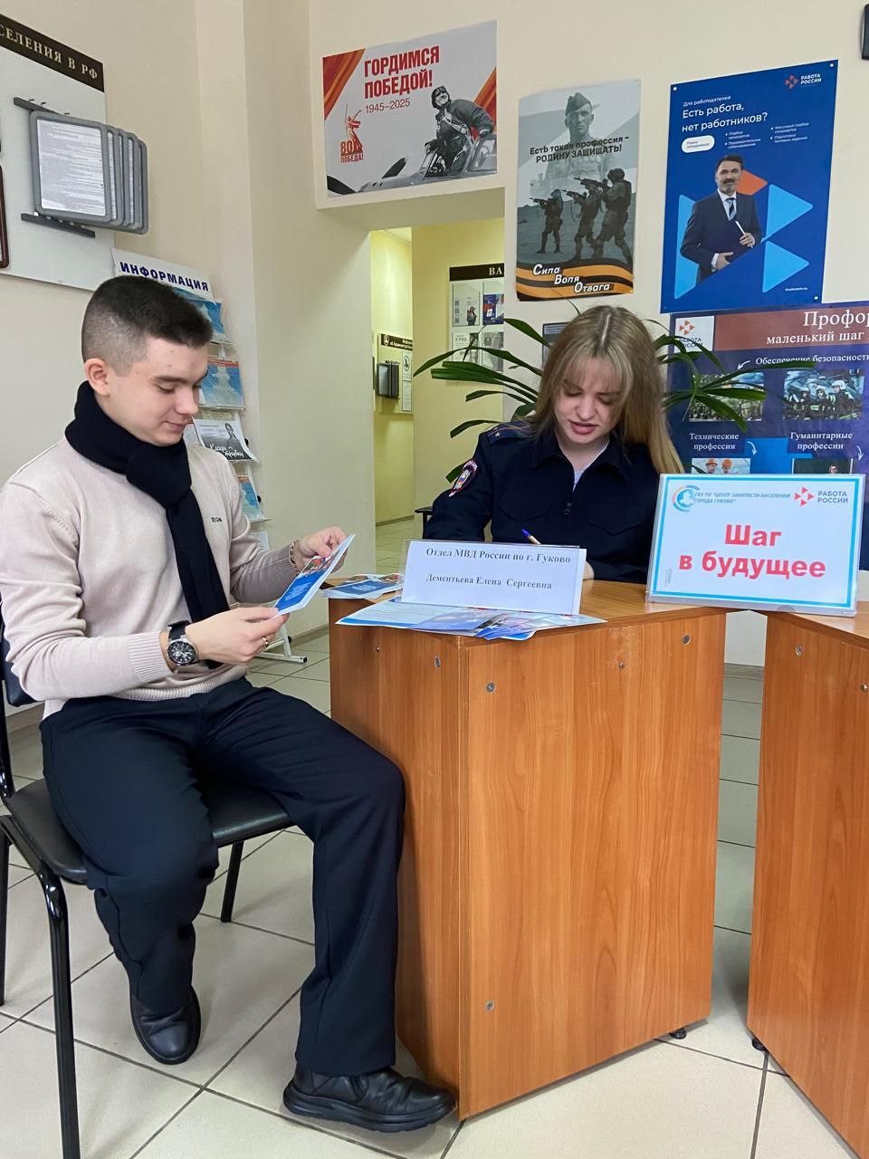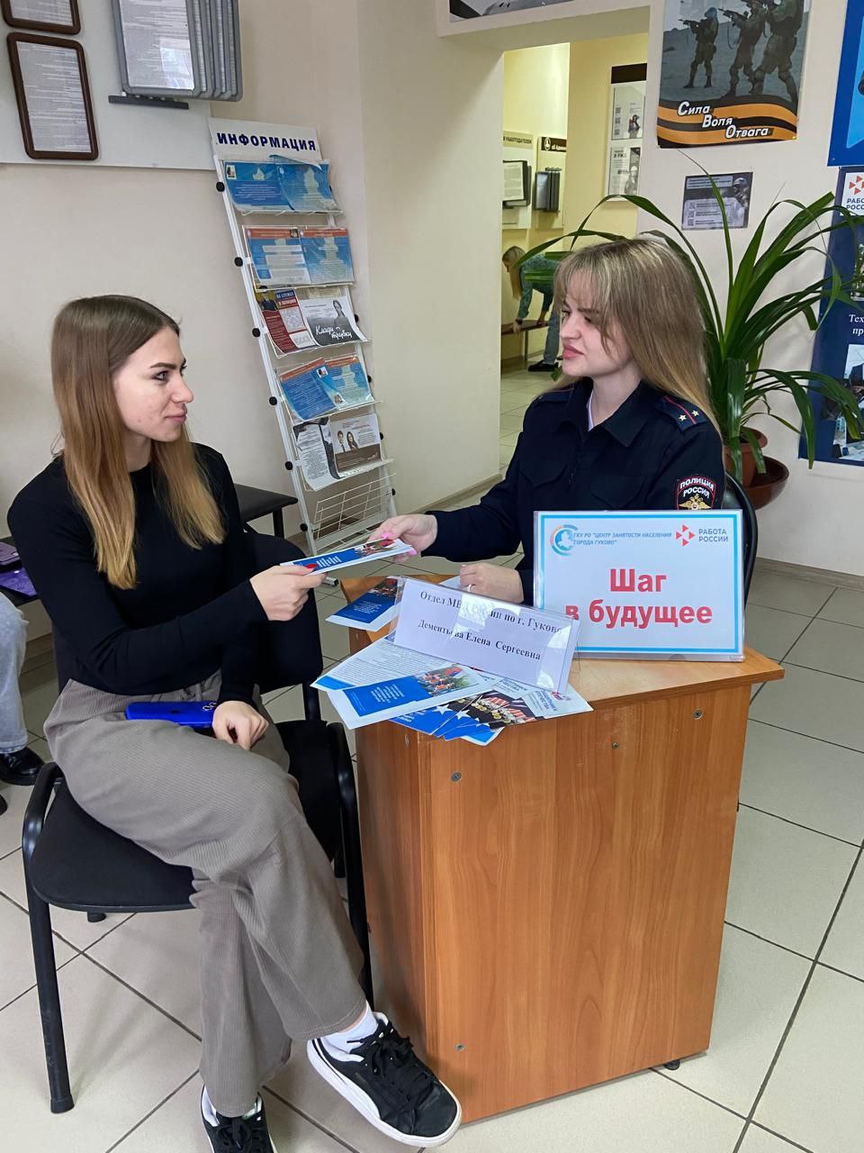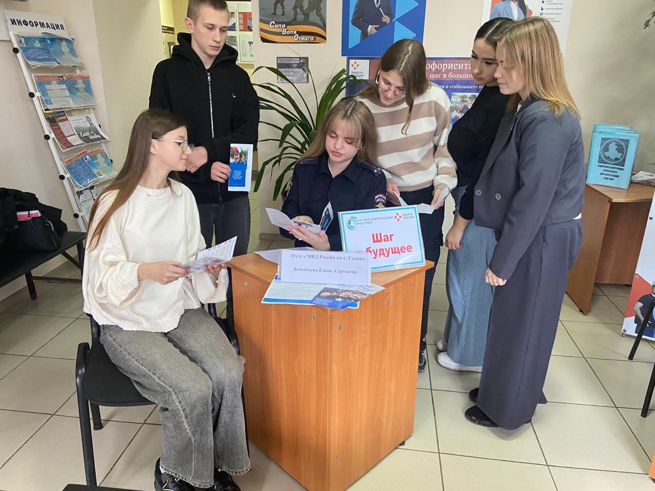 На мероприятии присутствовали граждане, ищущие работу, а также учащиеся заочного отделения Гуковского института экономики и права. По окончании встречи участникам были вручены информационные буклеты о преимуществе службы в органах внутренних дел.
