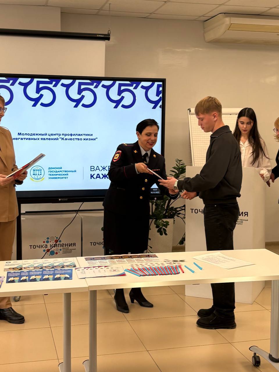 Перед Новогодними праздниками в Донском государственном техническом университете прошло поздравление и награждение волонтеров, из числа студентов университета, показавших себя в течение 2025 года лучшими в волонтерстве, в том числе в работе по профилактике негативных явлений среди студентов и школьников.