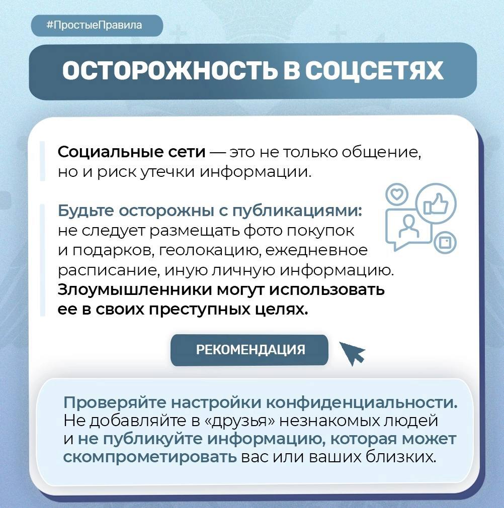 Следственное управление СК России по Ростовской области напоминает о том, что соблюдение «Простых правил» поможет не только избежать негативных ситуаций, но и обезопасить себя и близких от потенциальных угроз.