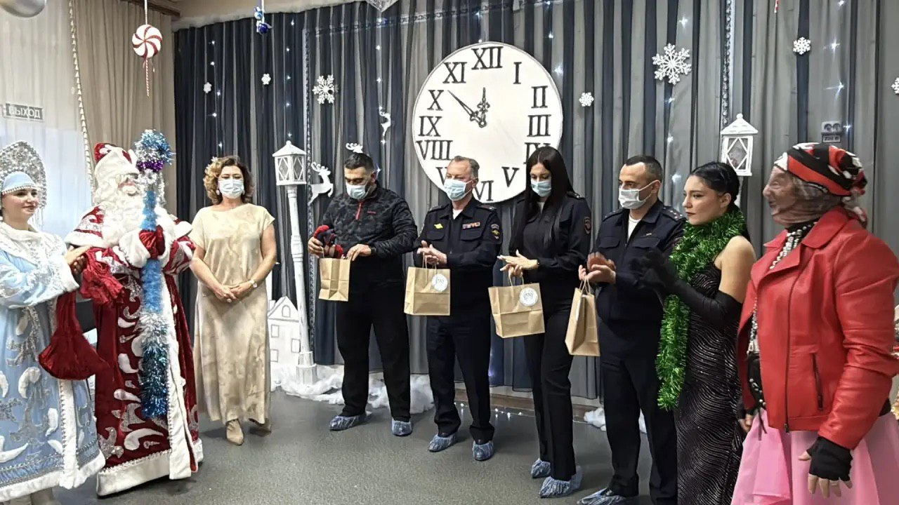Начальник Отдела МВД России по Пролетарскому району Виктор Марченко совместно с членом Общественного совета при территориальном Отделе Давидом Акопян в рамках ежегодной профилактической акции «Полицейский Дед Мороз» поздравили с наступающим Новым годом и вручили подарки воспитанникам «Пролетарской школы-интерната».