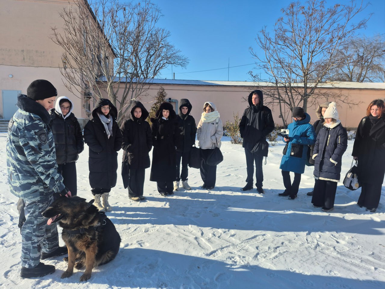 Темой занятия стало использование служебных собак. Кинолог старший сержант полиции Юлия Халилова. Гостья рассказала детям, кто такие полицейские–кинологи, чем они занимаются, как в оперативной деятельности помогают служебно–розыскные собаки. Полицейский и ее помощник по кличке «Ирида» показали умения и навыки совместной работы.