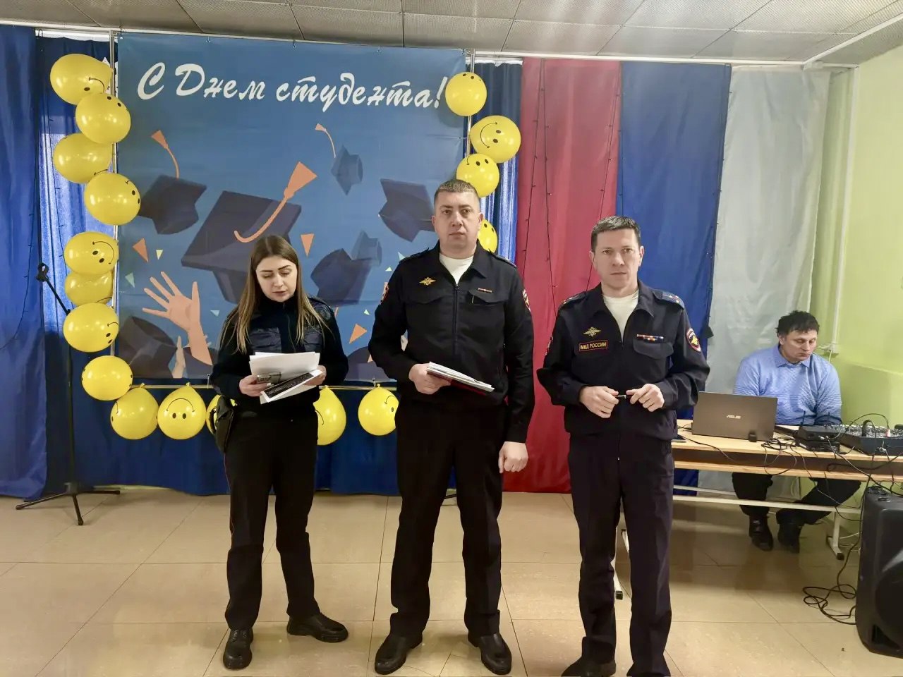 Полицейские поздравили ребят с Днем Российского студенчества и поделились буднями полицейских. Подробно рассказали о преимуществах, получаемых при поступлении в образовательные организации МВД России и о работе в органах внутренних дел. Сотрудники проинформировали о требованиях, предъявляемых к кандидатам на службу