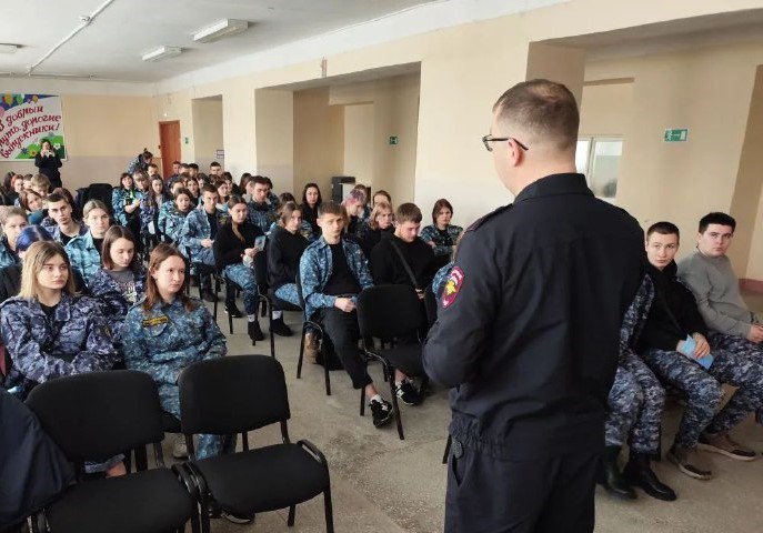 Врио начальника Центра кинологической службы ГУ МВД России по Ростовской области майор полиции Антон Ишков провел профилактическую встречу в формате живого диалога со студентами выпускных курсов по специальности «Кинология» и «Юриспруденция» Константиновского сельскохозяйственного техникума «КТАУ (КСХТ)».