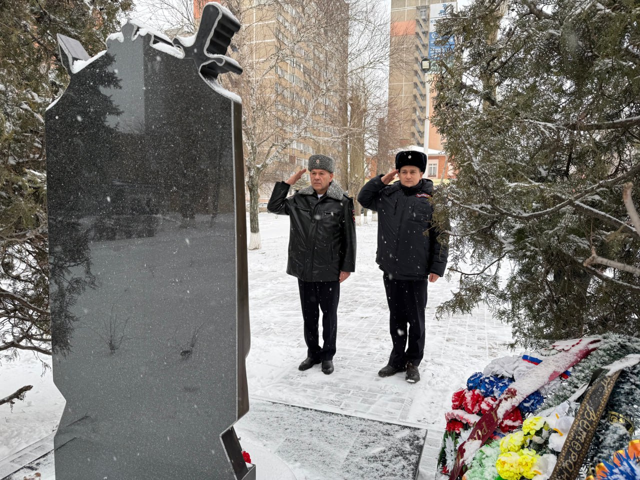 Полицейские Волгодонска возложили цветы к мемориальному обелиску в память о погибших сотрудниках