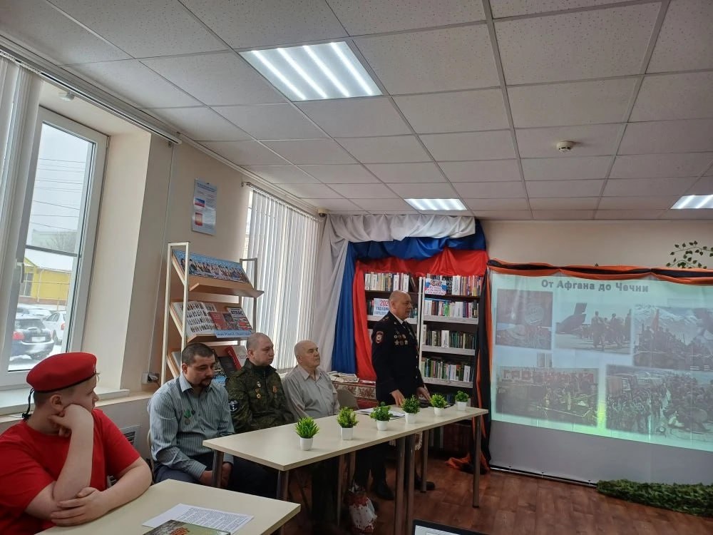Воин-интернационалист, участник Афганских событий, начальник спецприёмника Отдела МВД России по Тарасовскому району майор полиции Игорь Мещеряков поделился с волонтерами «Движения Первых» и школьниками воспоминаниями о службе в армии и работе органов внутренних дел. За более чем 30 лет отданных работе в органах внутренних дел сотруднику полиции выпало пережить множество уникальных событий. Он рассказал ребятам, что чувство патриотизма и долга Родине является значимым в жизни каждого гражданина Российской Федерации, а поддержка боевых товарищей в бою и сослуживцев в полиции, позволяет выполнять все поставленные государством задачи.