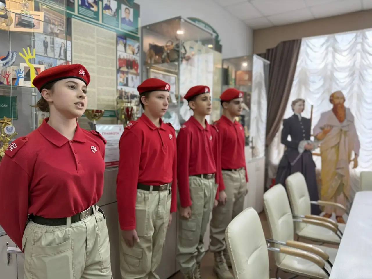 В завершение встречи почетного гостя пригласили в музей гимназии, где юные экскурсоводы и юнармейцы провели для него тематическую экскурсию «День защитника Отечества: история праздника». Ребята с интересом рассказали ветерану об экспонатах, связанных с военной историей страны, и поделились своими исследованиями.