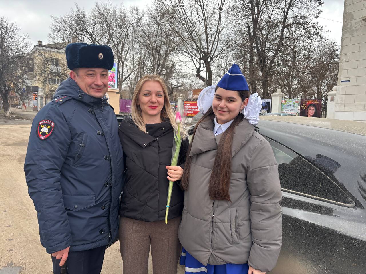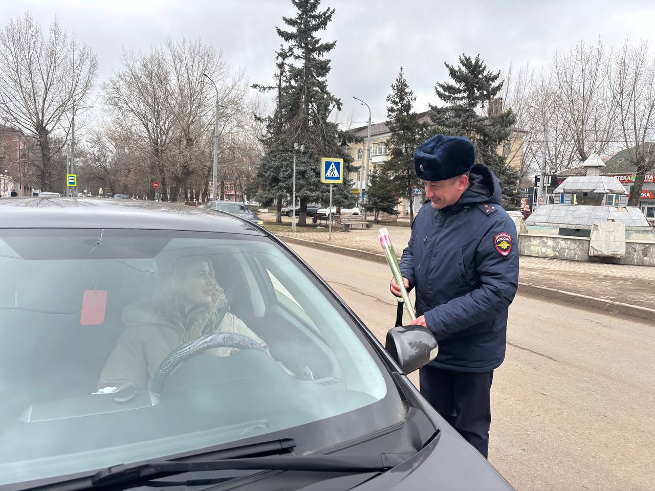 В преддверии Международного женского дня отряд ЮИД «ДПС» МБОУ гимназии 12 г. Каменск-Шахтинского совместно с инспектором по пропаганде БДД Отделения Госавтоинспекции МО МВД России «Каменский» старшим лейтенантом полиции Александром Александровичем Новиковым провели акцию «Цветы для автоледи».