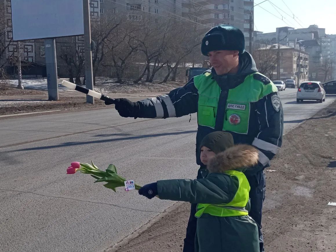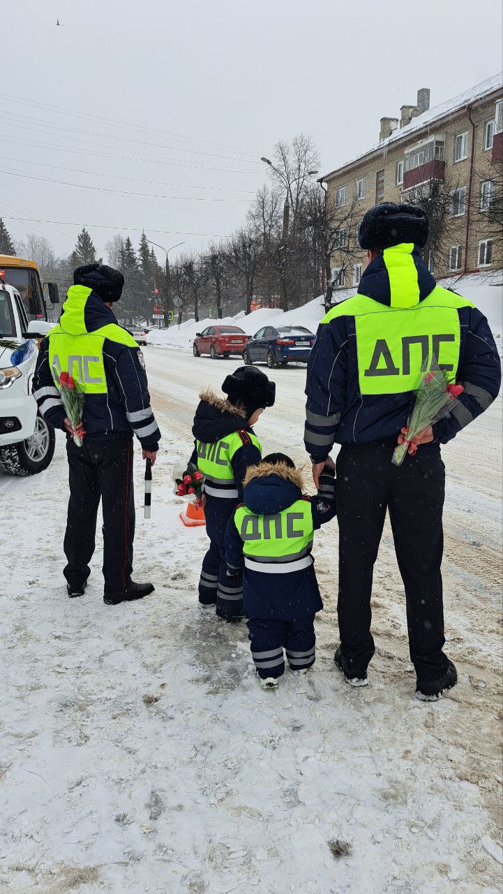 Автоинспекторы сменили жезлы на букеты и вышли поздравлять прекрасных дам - не только тех, кто за рулем, но и пассажиров, и даже пешеходов!