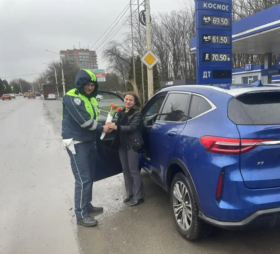 Новочеркасские госавтоинспекторы приняли участие во Всероссийской акции «Цветы для автоледи»