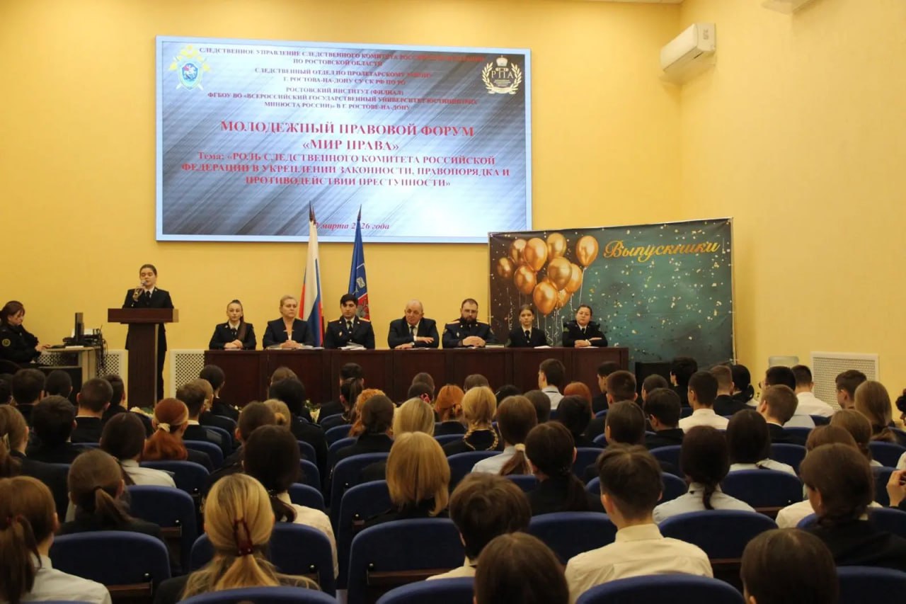 На площадке Ростовского института (филиала) ВГУЮ (РПА Минюста России) состоялся молодежный правовой форум «Роль Следственного комитета Российской Федерации в укреплении законности, правопорядка и противодействии преступности». Мероприятие организовано следственным управлением СК России по Ростовской области в целях повышения уровня правовой культуры и юридической грамотности молодежи, формирования устойчивого уважения к закону и преодоления правового нигилизма.