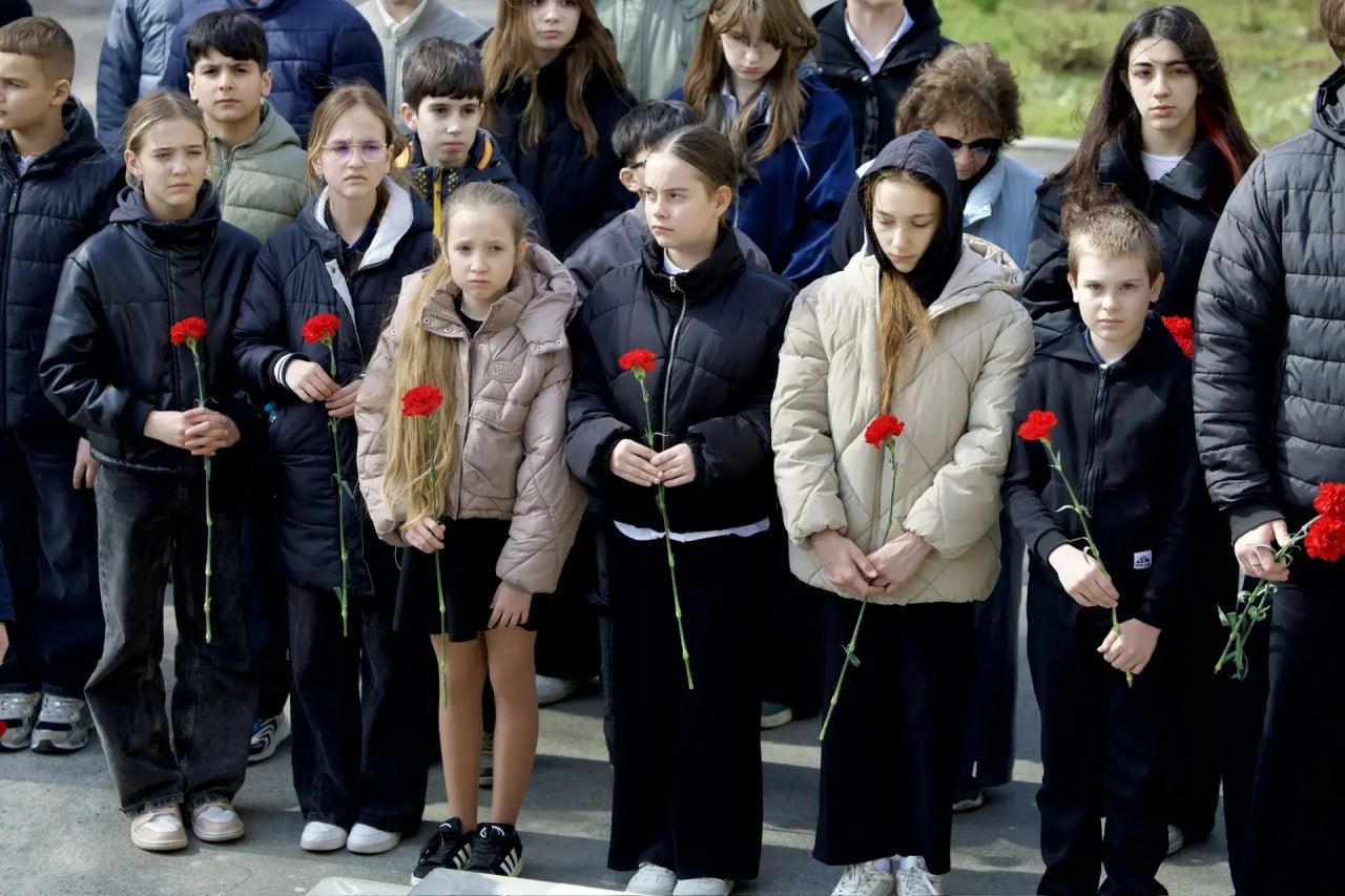Память о старшем лейтенанте милиции почтили Минутой молчания, после чего участники церемонии возложили цветы.