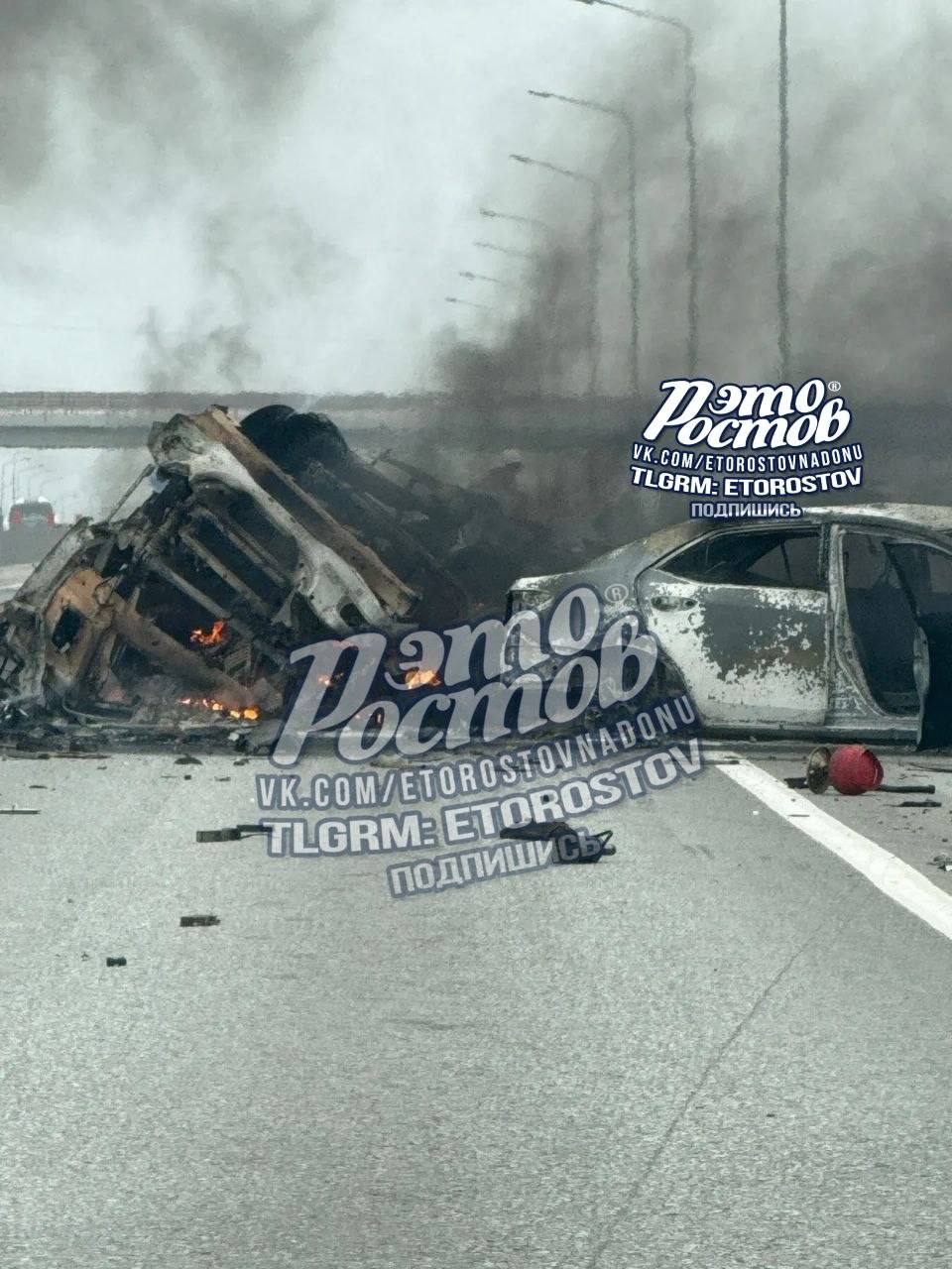 Причиной жуткого ДТП в Ростовской области стало лопнувшее колесо бензовоза.