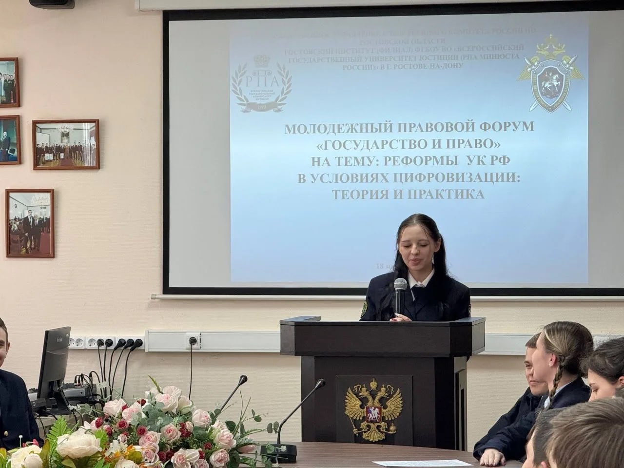В марте на базе Ростовского института (филиала) ВГУЮ (РПА Минюста России) состоялся молодежный правовой форум, проведенный при непосредственном участии следственного управления Следственного комитета Российской Федерации по Ростовской области. Мероприятие, объединившее студентов, преподавателей и практикующих юристов, было посвящено актуальной теме: «Реформы Уголовного кодекса РФ в условиях цифровизации: теория и практика».