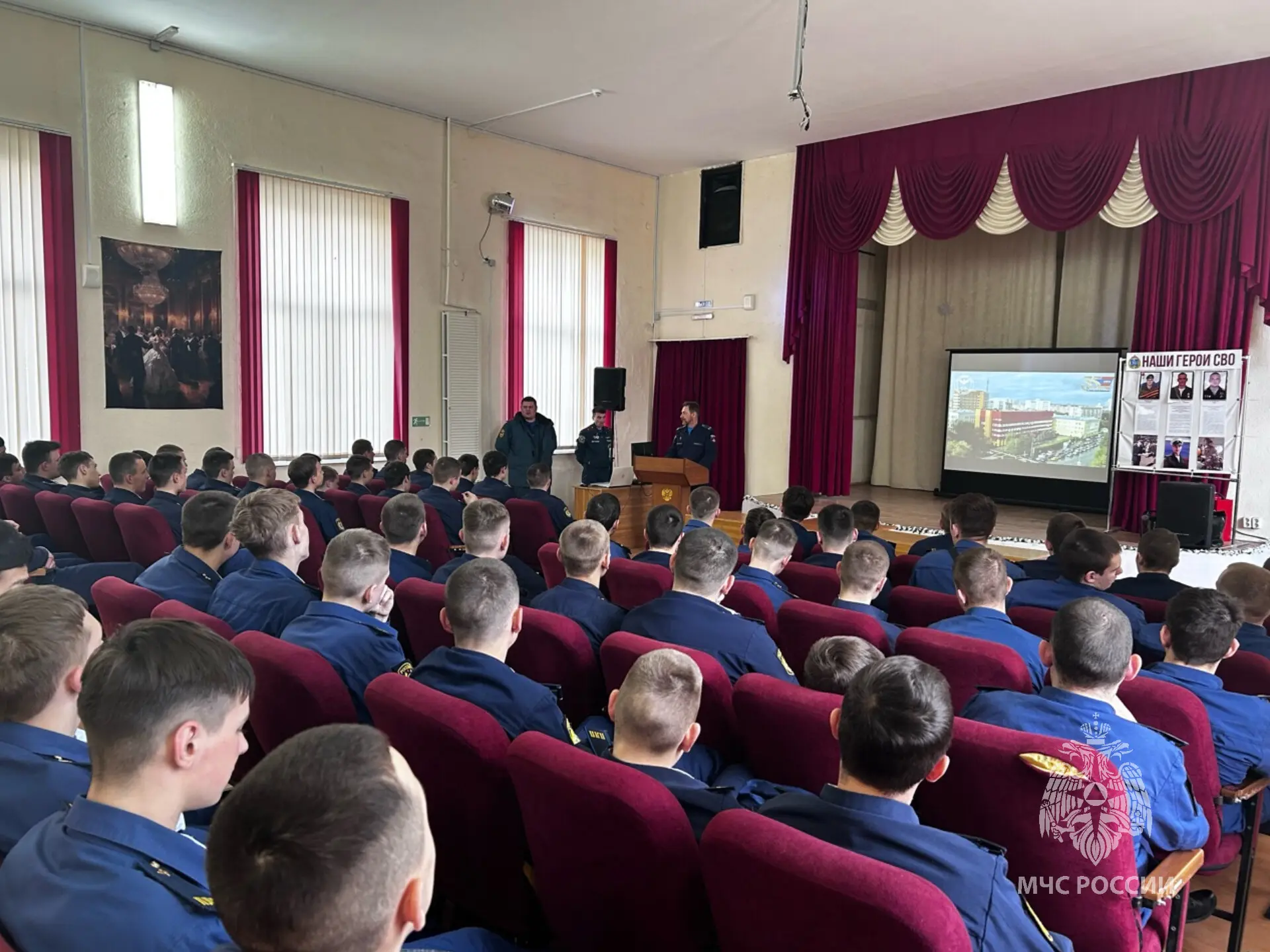 Сотрудники испытательной пожарной лаборатории Ростовской области посетили Неклиновскую школу-интернат с первоначальной лётной подготовкой им. 4-ой Краснознамённой Воздушной Армии в рамках кампании по подбору кандидатов на обучение в вузах МЧС России.