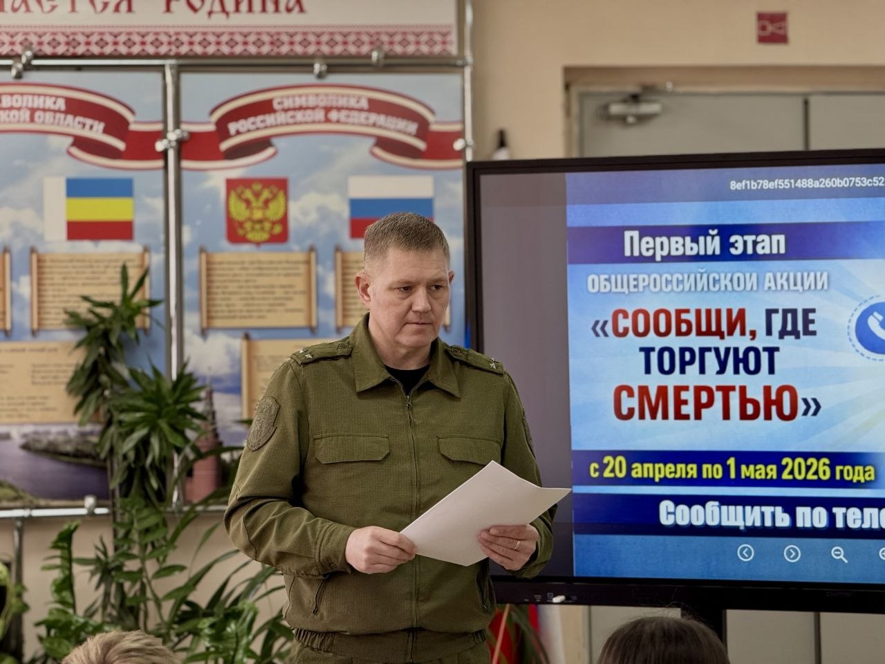 В рамках Общероссийской акции «Сообщи, где торгуют смертью» в «Школе № 88 имени Якова Петровича Бакланова» состоялась профилактическая беседа с учащимися 8-х классов, посвященная предупреждению наркомании и формированию здорового образа жизни среди подростков.