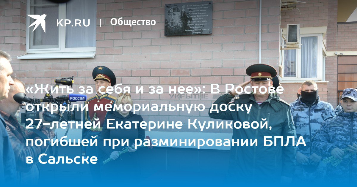 В Ростове-на-Дону состоялась церемония открытия мемориальной доски прапорщику полиции Екатерине Валерьевне Куликовой, погибшей при выполнении служебного долга. Мемориал установлен на фасаде дома № 11 по улице Тимофеева, где...