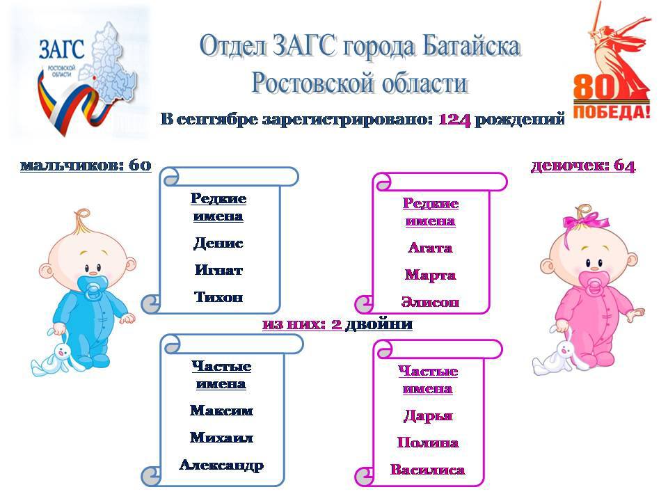 В сентябре в городском отделе ЗАГС зарегистрировано 124 рождения: