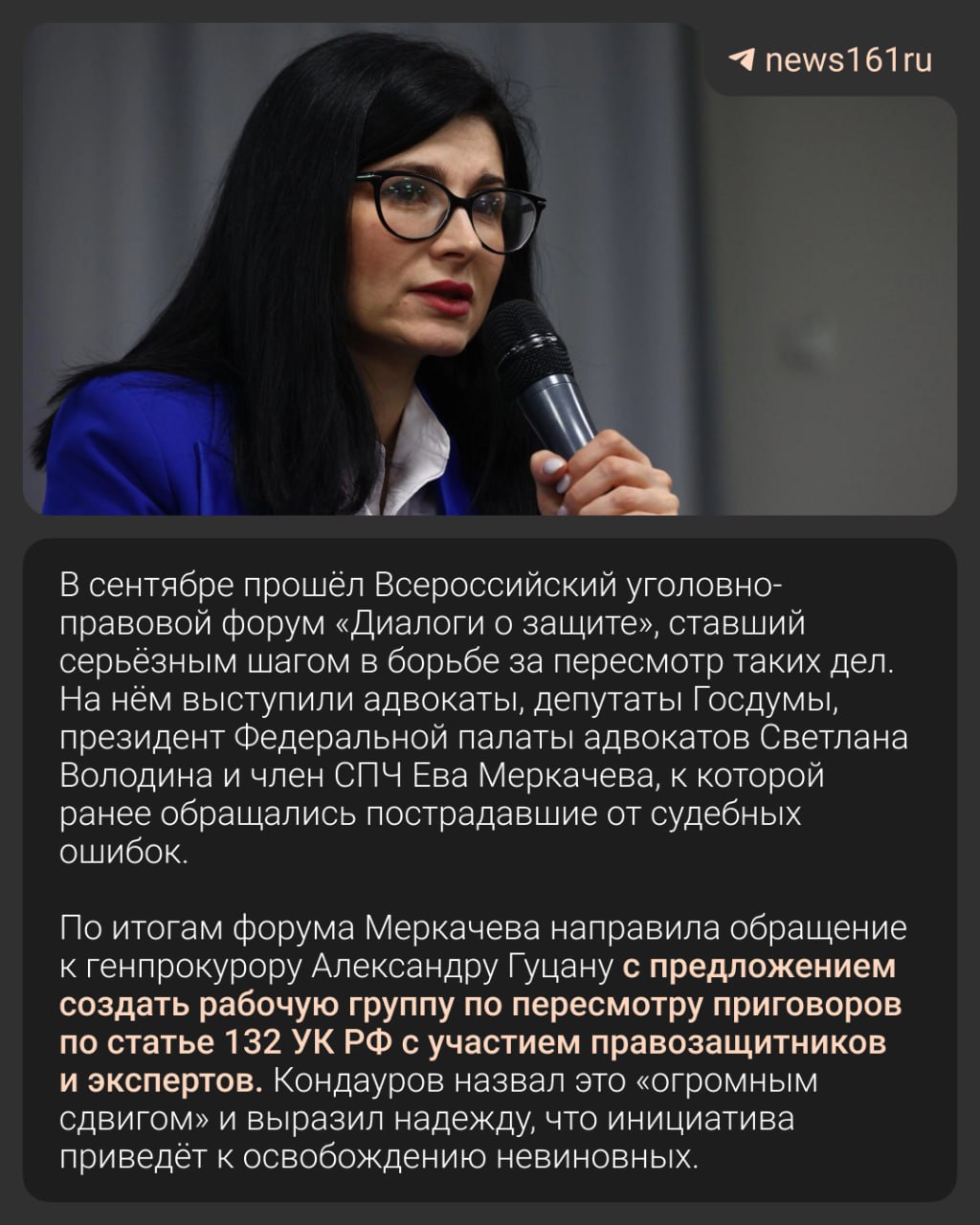 Истории ложно осужденных за «педофилию» новому генпрокурору РФ передала член Совета по правам человека при президенте РФ Ева Меркачева.