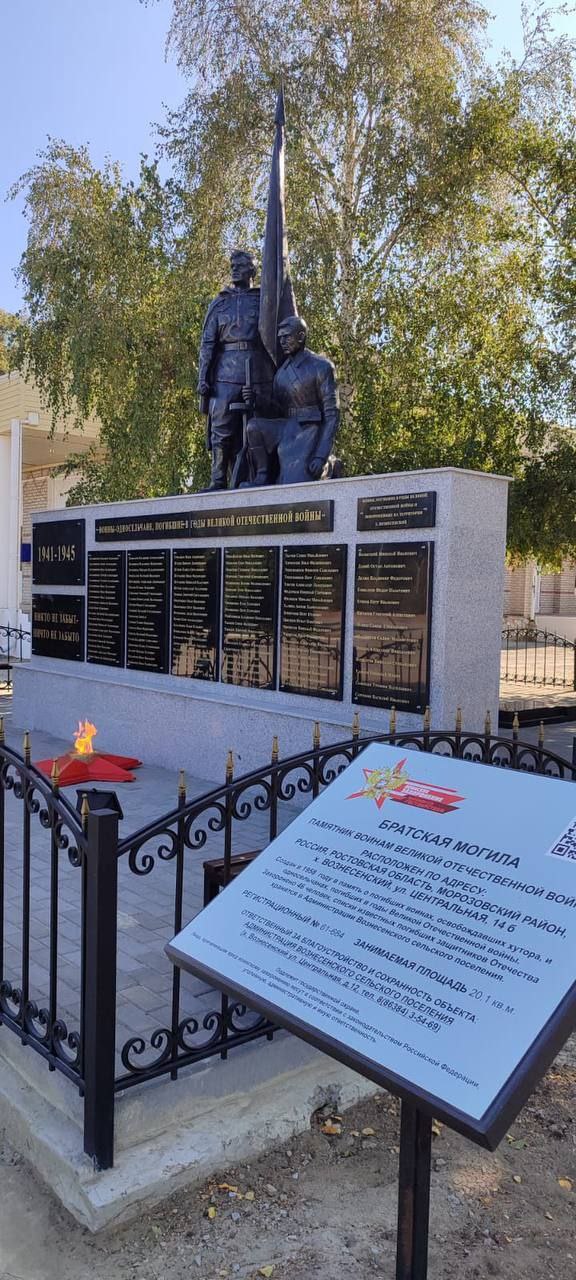 Как уточнил глава Ростовской области Юрий Слюсарь, среди них - монументы в Морозовском районе (мемориал Славы в Морозовске и памятник в хуторе Вознесенском) и в Новочеркасске (комплекс мемориала «Братская могила»).