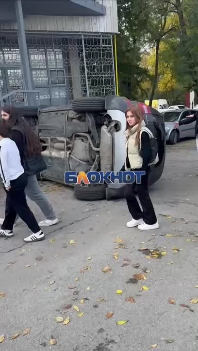 Машина перевернулась в результате ДТП. Подробности уточняются.