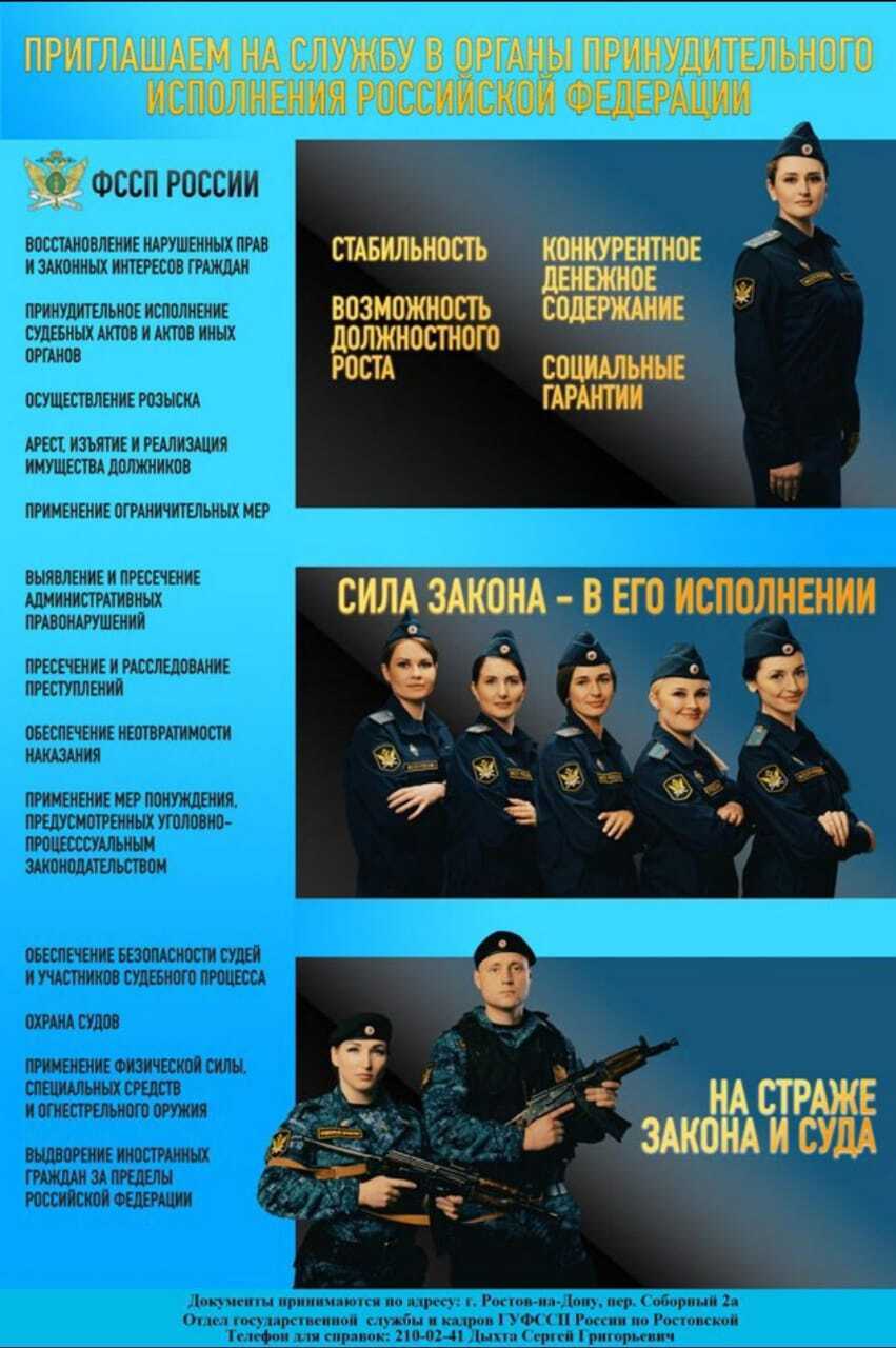 Главное управление Федеральной службы судебных приставов по Ростовской области приглашает на службу в органы принудительного исполнения граждан Российской Федерации от 18 и до 40 лет, имеющих среднее профессиональное или высшее образование.