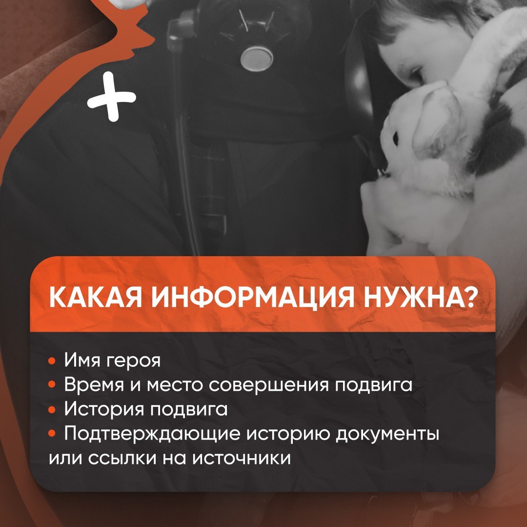 Что нужно указать в заявке:Отправить историю: vk.cc/cQlSRt1) Имя героя, место рождения, фото героя (обязательно), время и место совершения подвига, описание истории.