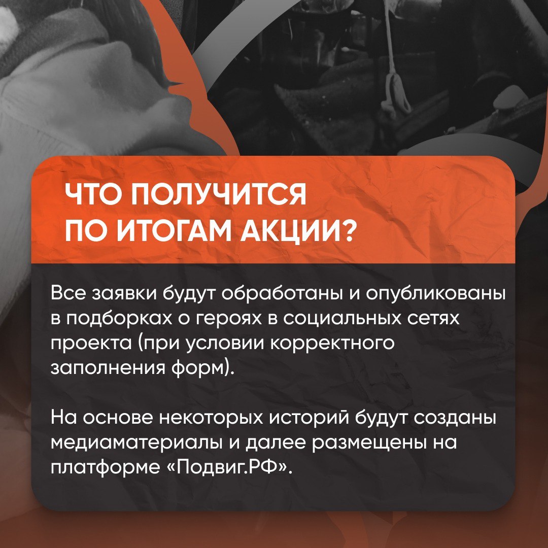 Все истории будут опубликованы в подборках о героях в соцсетях проекта «Подвиг.РФ».