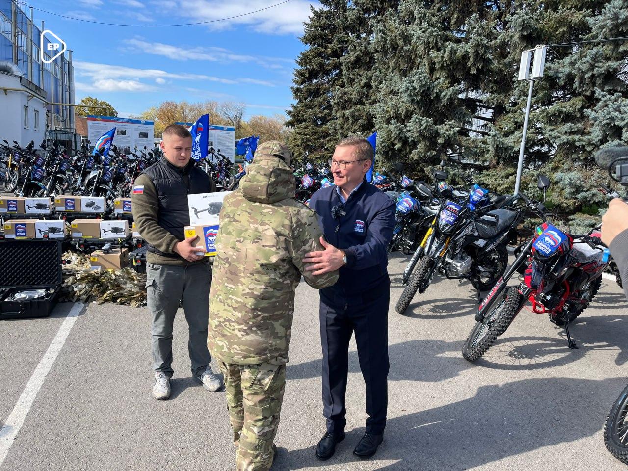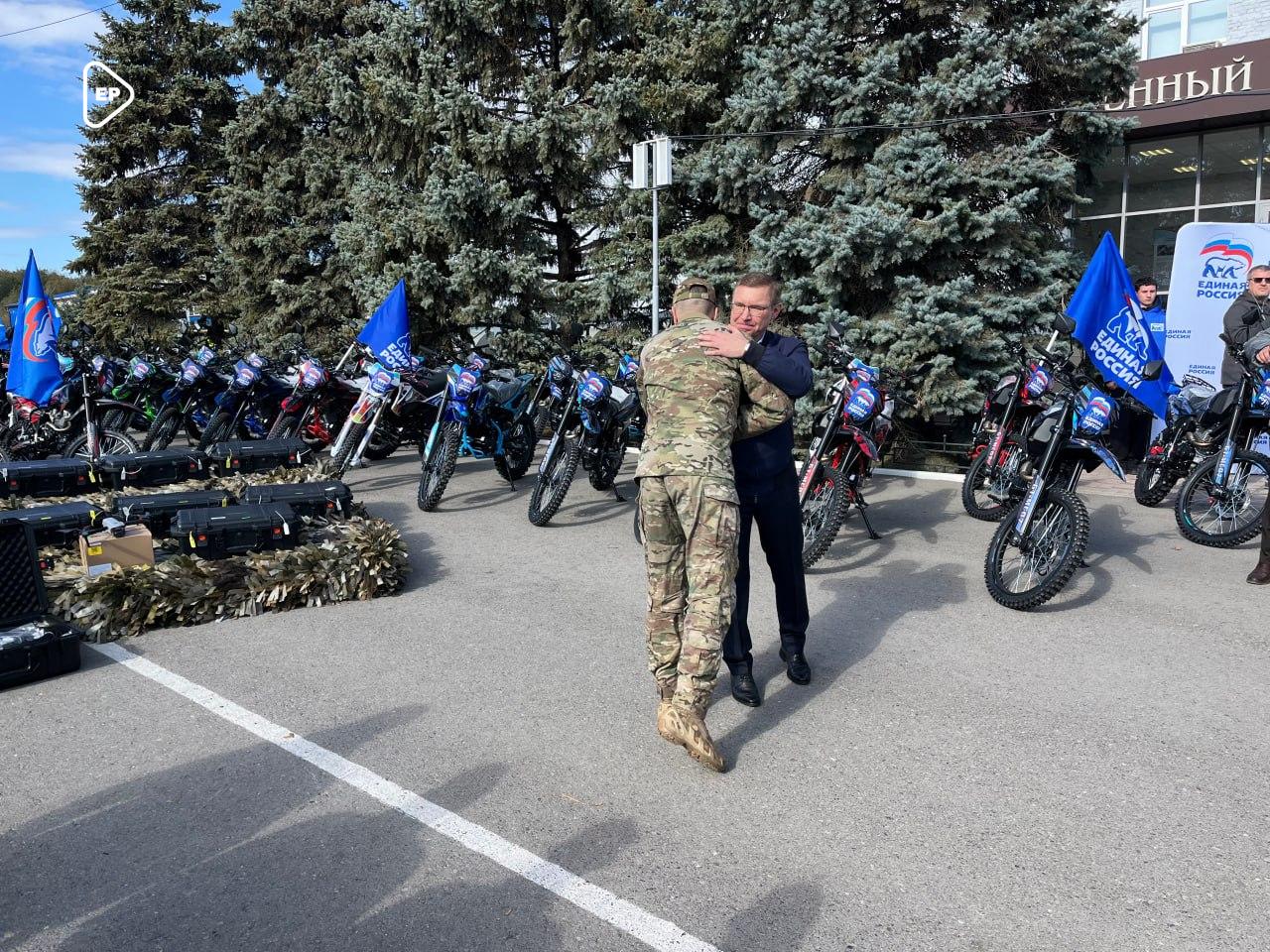 Единая Россия передала мотоциклы и технику военнослужащим группировки войск «Центр»