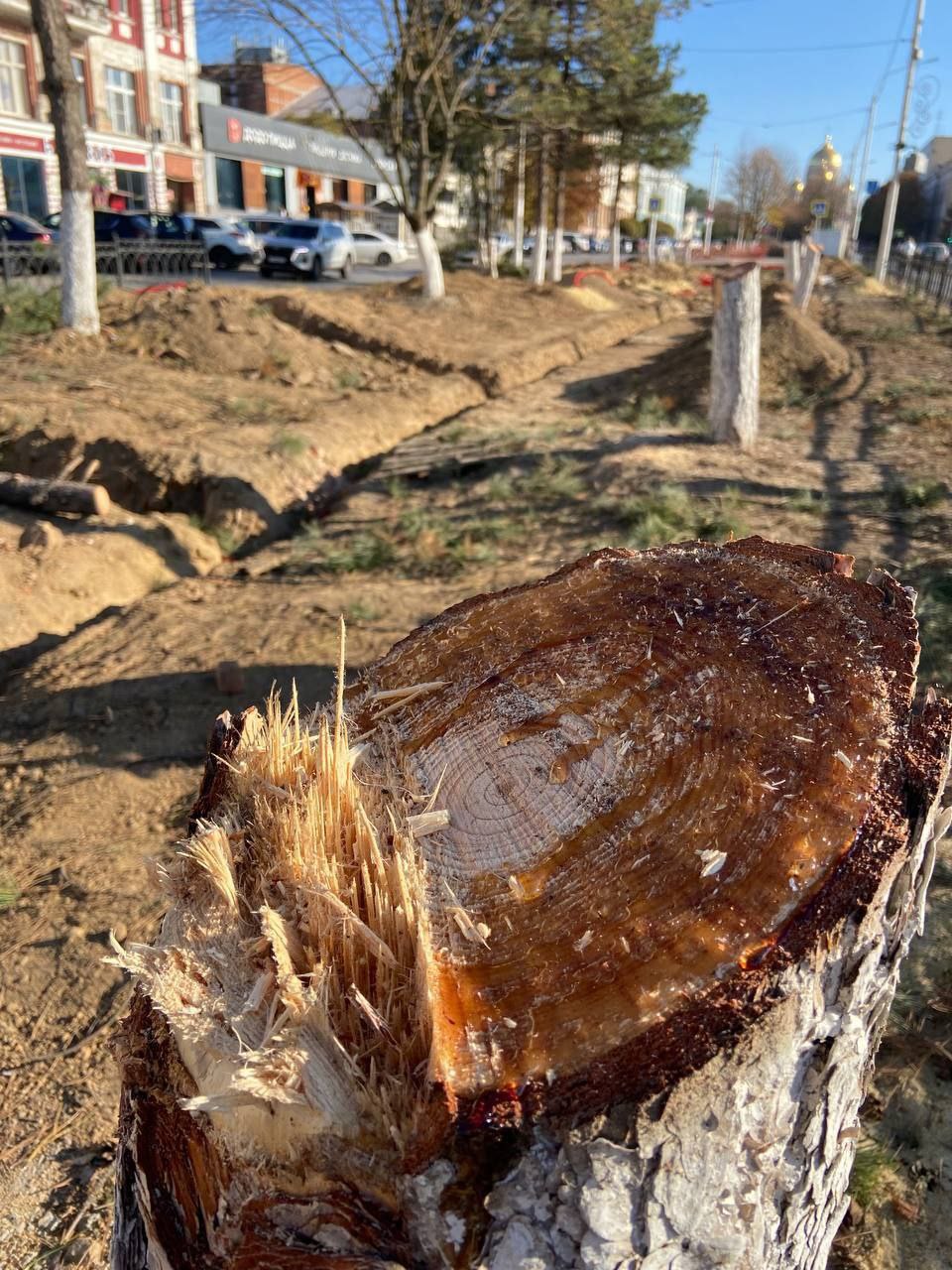 Сегодня в Новочеркасск экстренно выехал губернатор Юрий Борисович Слюсарь. Там в ходе благоустройства территории вырубили здоровые сосны, которые якобы «мешали проекту».