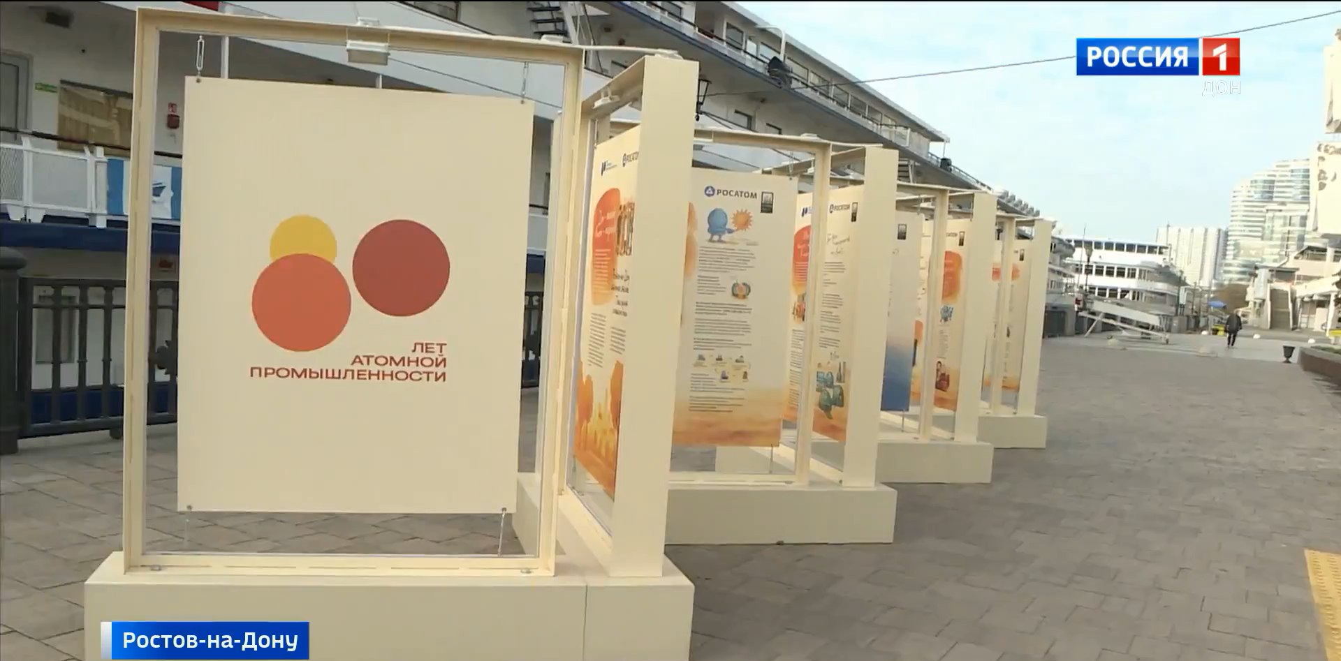 Уличная выставка, посвященная 80-летию атомной промышленности, работает на набережной Ростова. Её организатор - госкорпорация “Росатом”.