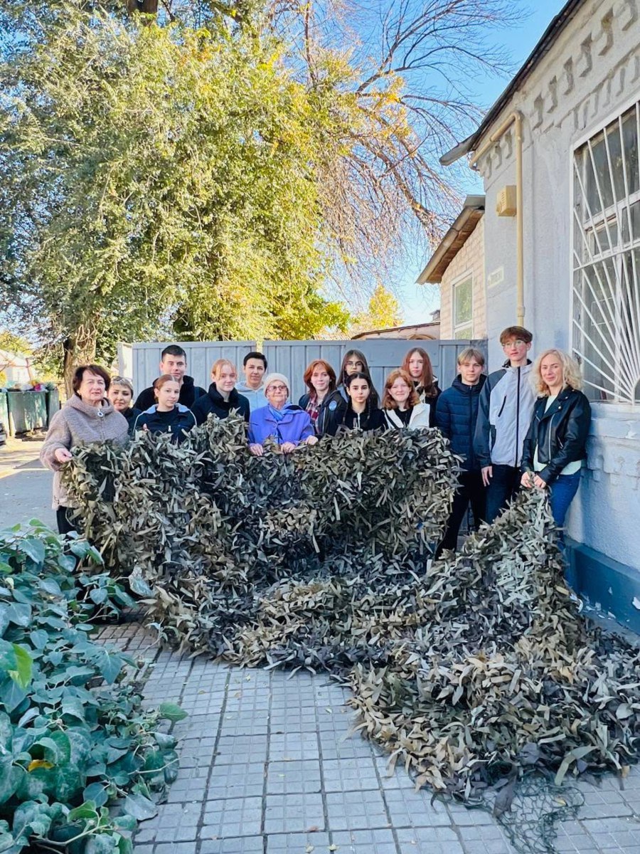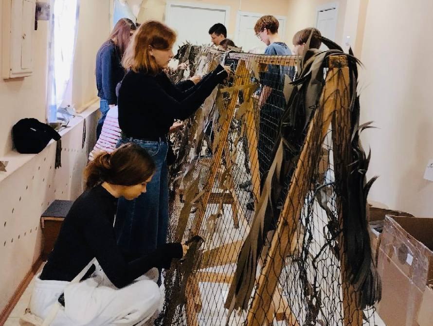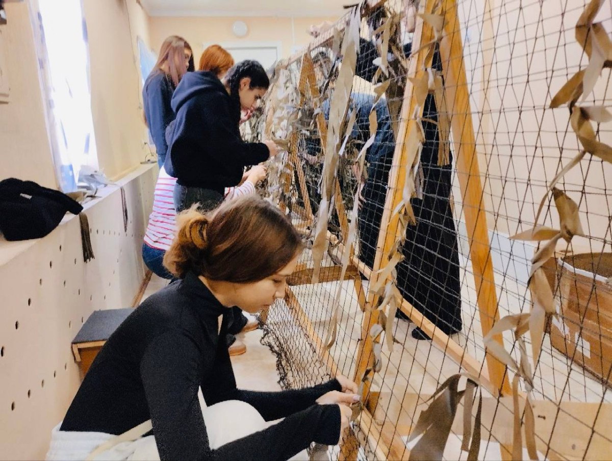 Ученики школы №16 вместе с классным руководителем Евгенией Гептинг провели день по-особенному — плели маскировочные сети для наших бойцов. Мастер-класс был приурочен к юбилею Великой Победы.