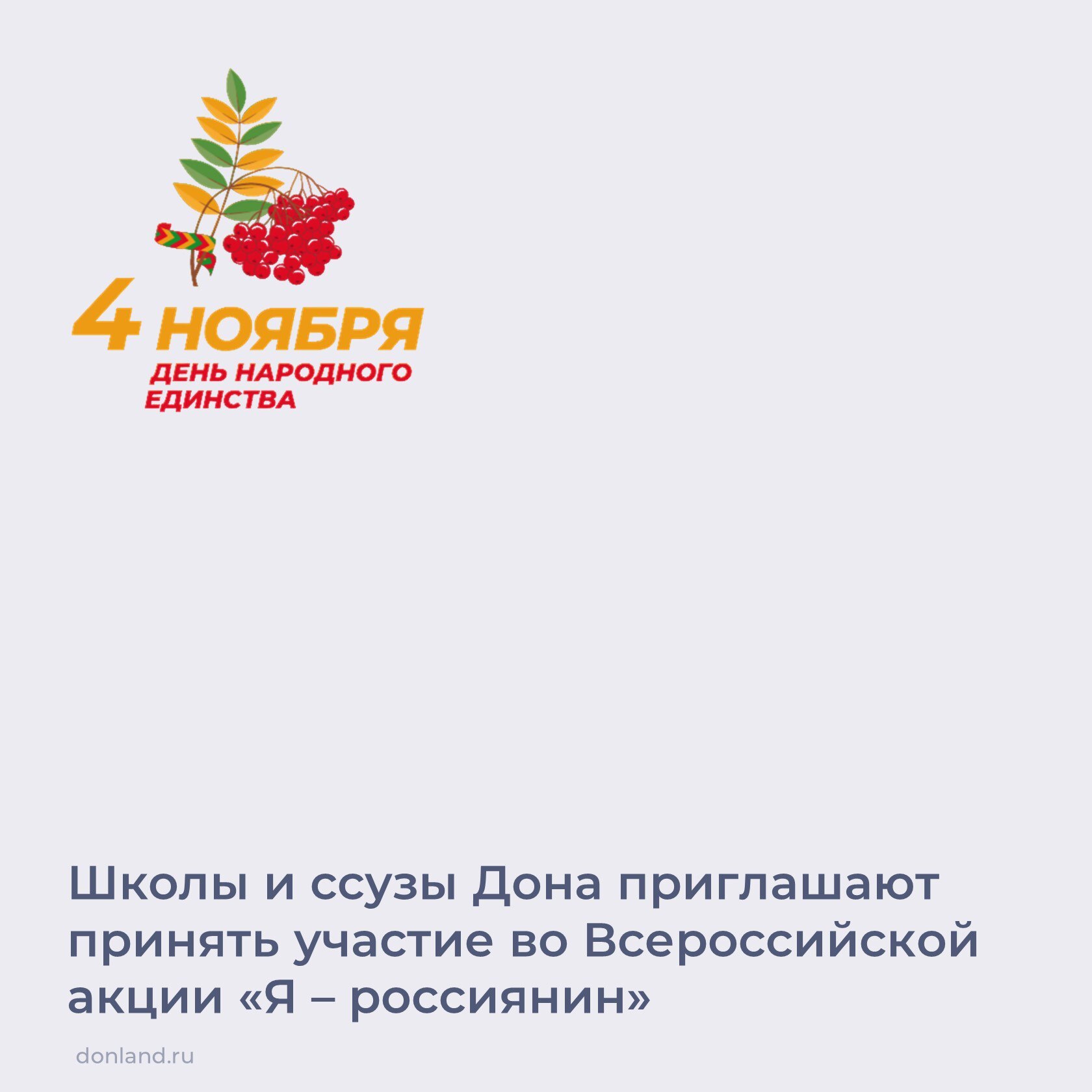 В школах и ссузах страны проходит Всероссийская детская культурно-просветительская акция «Я – россиянин», приуроченная ко Дню народного единства. В этом году акция посвящена 80-летию Великой Победы.